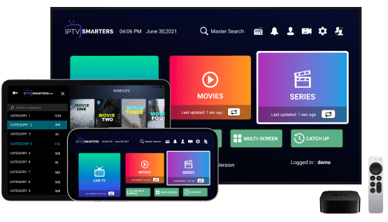 Our IPTV services are accessible via all smart TV devices (Samsung, Sony, LG…), all Android devices (phones), Apple TV, iPhone, Google Chromecast, MAG box in the STB emulator app and FireStick.